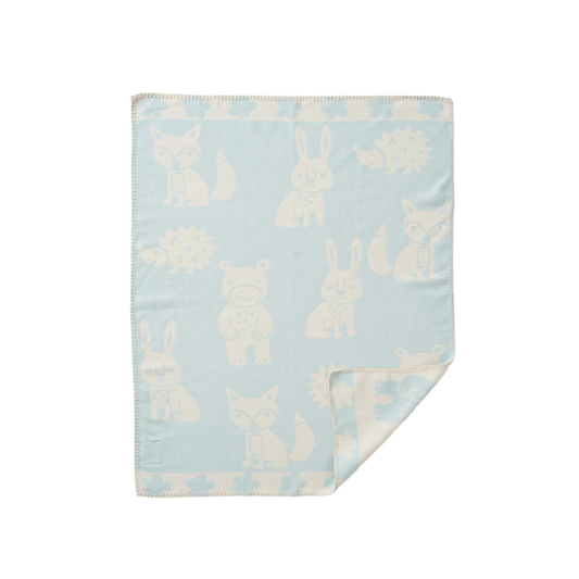 Cradle Blanket Fox - Organic wool - Blue/Duck Blue - 65x90 cm - Klippan