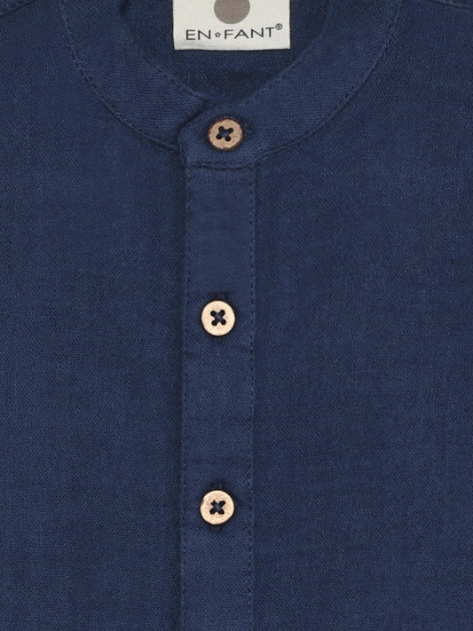 Overhemd top - Biologisch katoen mousseline - Medieval Blue - Shirt LS Muslin - En Fant